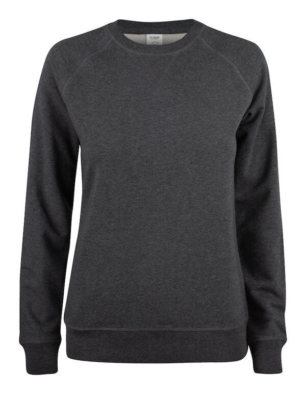 Sweat-shirt col rond femme. Manches raglan. Poche secrète zippée. Bord-côte 1x1 avec élasthanne aux poignets et à la taille. Earphone system. Coutures flatlock stylisées. | Intérieur finition French Terry.