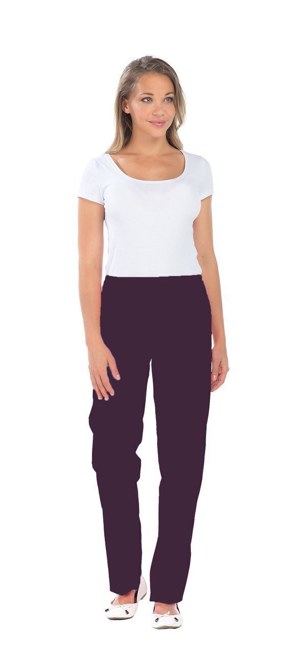 Pantalon femme. Taille semi-élastiquée effet ventre plat. 2 poches italiennes. E.J. : 82 cm.